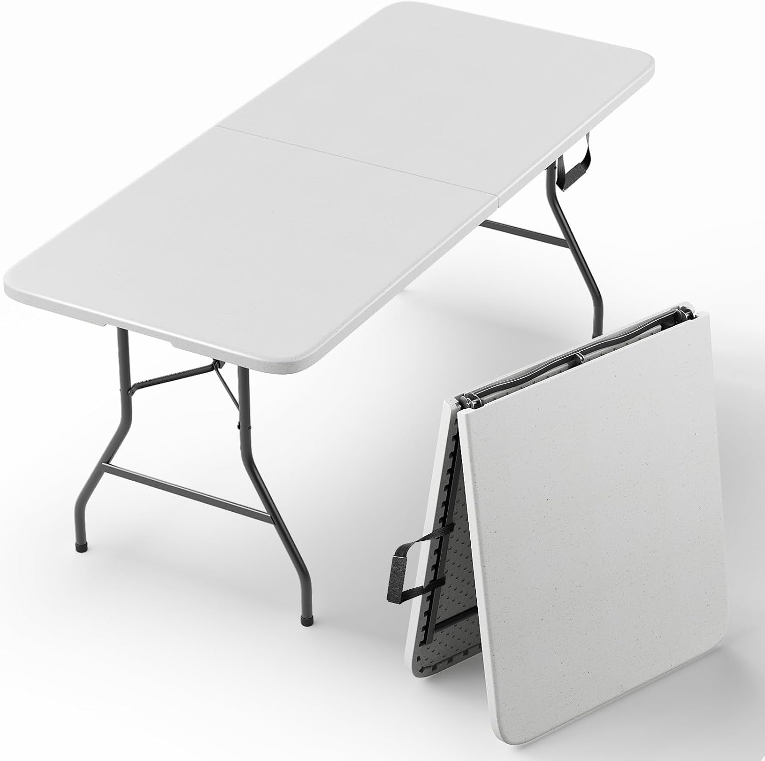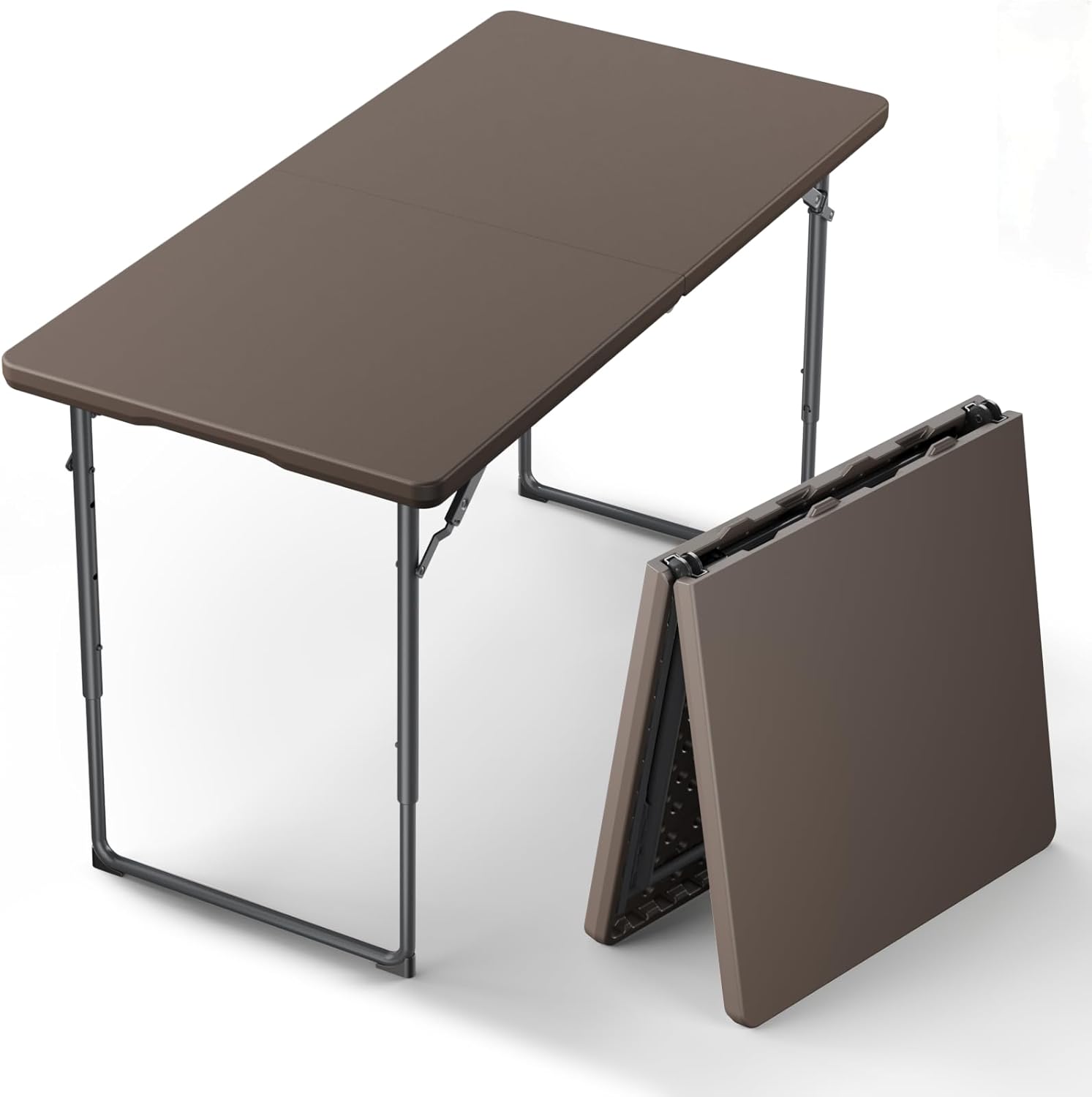 Folding Table, 4FT Foldable Picnic Table with Adjustable Height, Heavy Duty Fold-in-Half Portable Table for Weddings, Camping, RV Travel, Parties, BBQs, and Indoor Use, Easy to Fold and Store, Brown